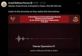 이 녹취록에 의하면 이스라엘이 민간이 학살을 한 것이 아니라 자기들끼리 실수로 병원 주차장 쪽으로 오발탄을 쏴서 이 사단이 난 것이라고 보이고 있습니다.